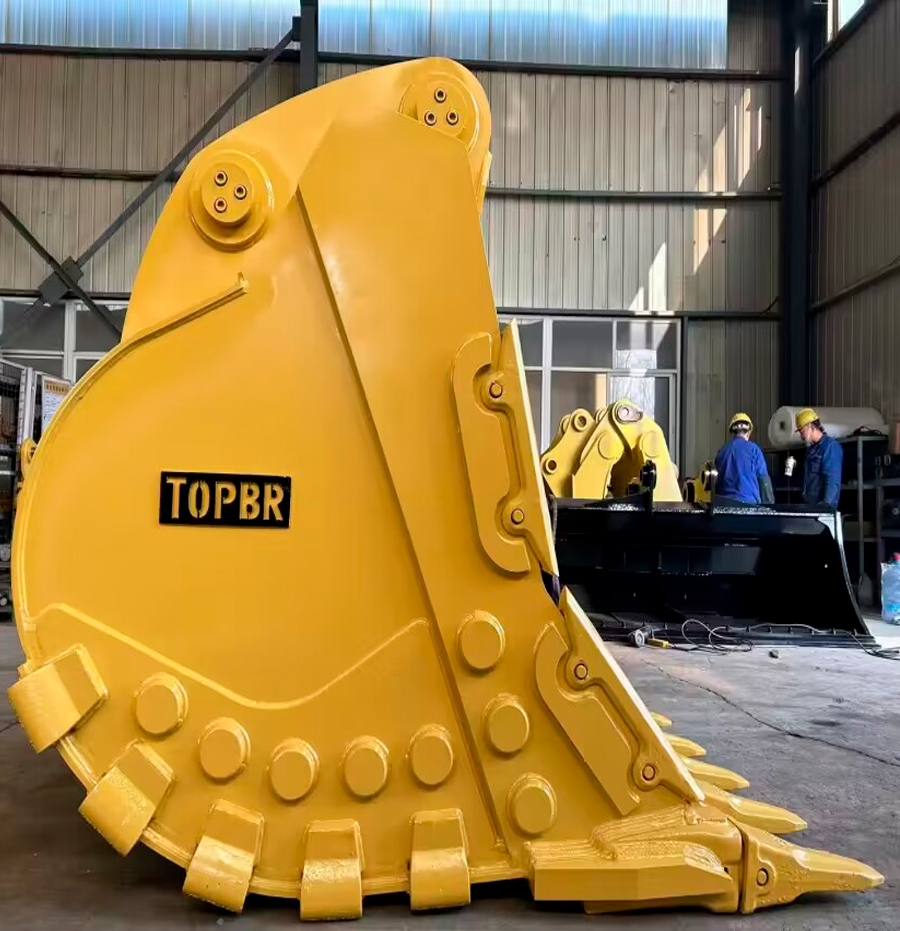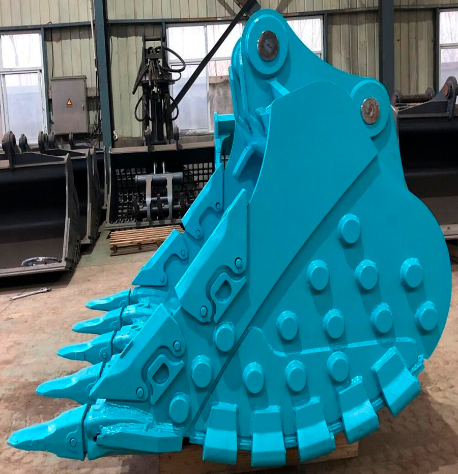 Caçambas para escavadeiras e retroescavadeiras, disponíveis nos modelos Rocha e Terraplanagem.